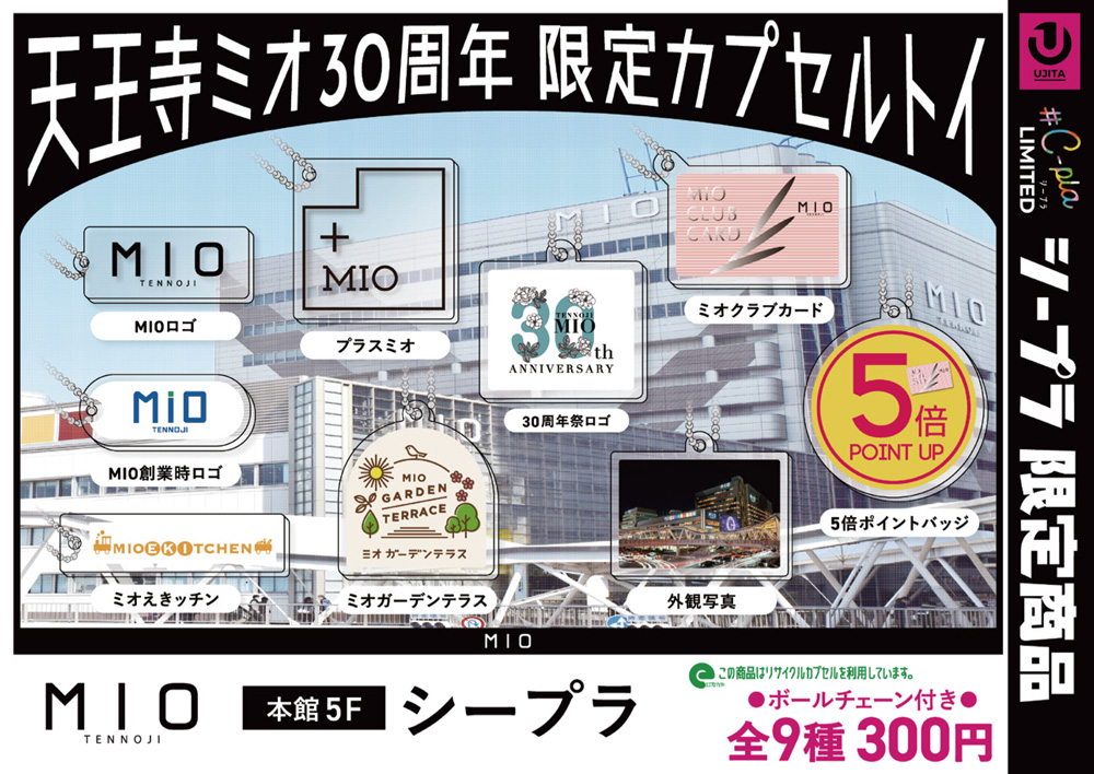天王寺MIO30周年を祝して、限定カプセルトイが新登場!🎈 MIOの魅力をギュッと詰め込んだラインナップは全て天王寺MIO店限定。記念にぜひコンプリートしてね!